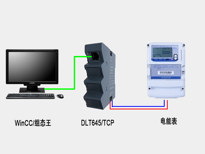 通過(guò)DLT645/TCP轉(zhuǎn)換器,可將帶有DLT645協(xié)議接口的電能表(如威勝電能表)轉(zhuǎn)成(ModbusTCP或S7-300TCP/IP)協(xié)議,直接與上位機(jī)以太網(wǎng)通訊。